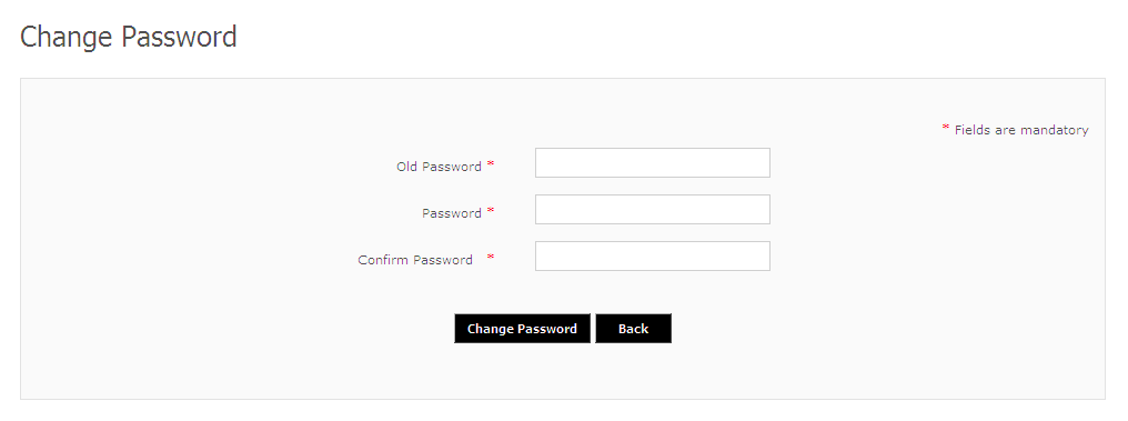 Click on ' Change pass ' in top menu section.In ensuring screen Enter the old password in the ' Old password ' field.Enter the new password in the ' Password ' field and confirm it by retyping it in the ' Confirm Password ' field. Both the passwords should match and in the case the your password is updated to the newly entered password.